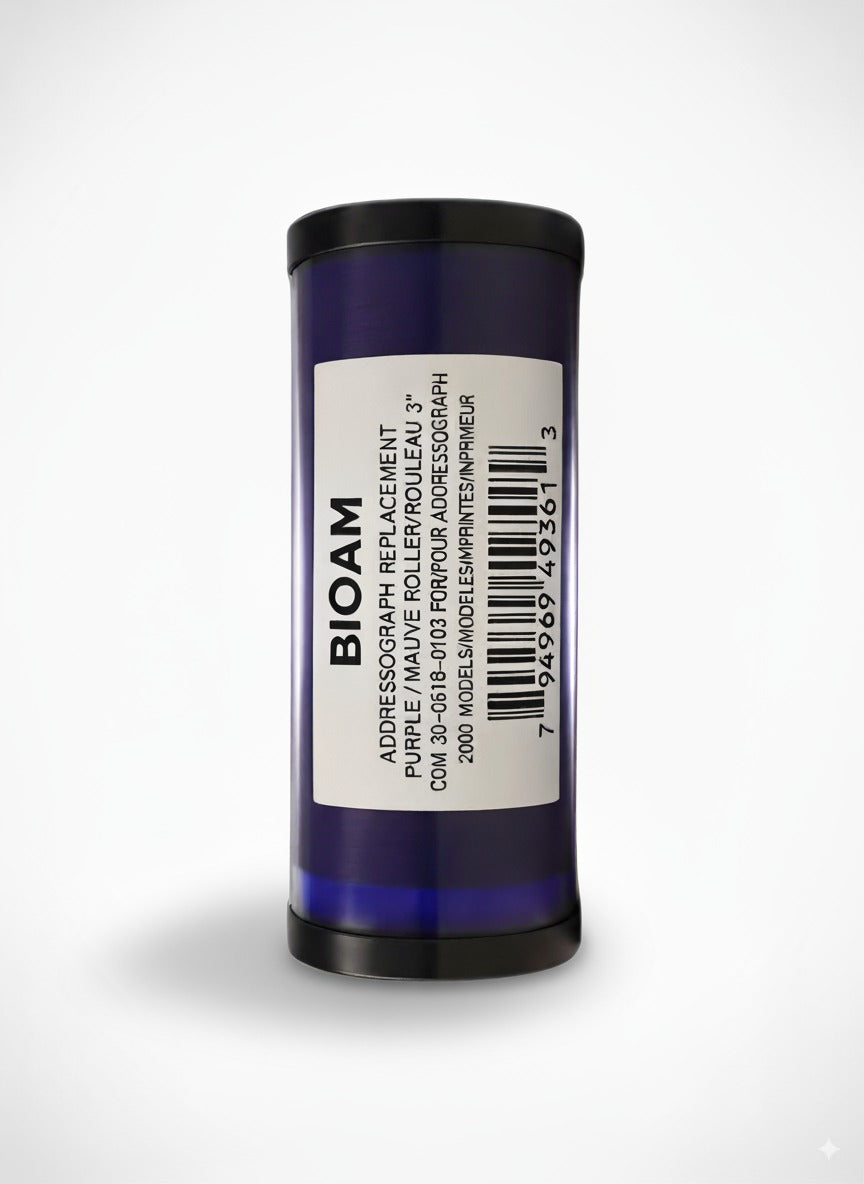 Rouleau encreur mauve de 3" BIOAM (COM-30-0518-0103-1) pour Addressographe 2000.