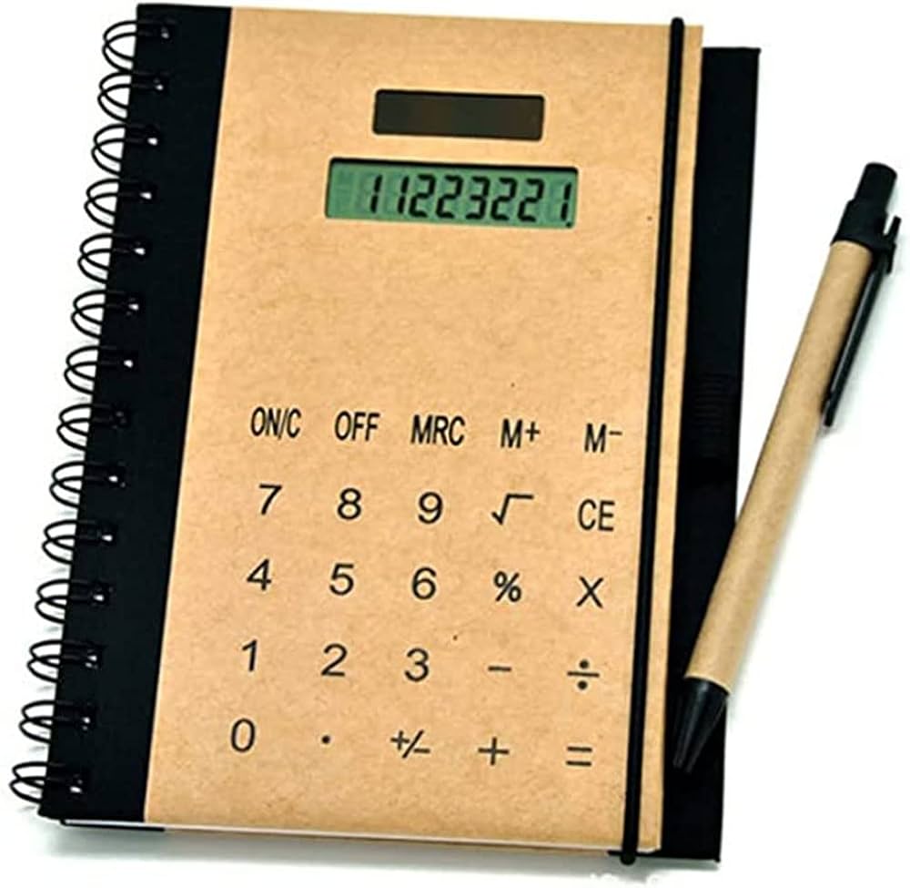 Calculatrice multifonction à spirale avec emplacement pour stylo, bloc