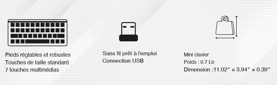 Le clavier est léger avec une élévation d’environ 1 demi pouce pour une utilisation naturelle et normale. Ce mini-clavier incorpore des clefs de fonction pour en diminuer et limiter l’amplitude des mouvements des mains lors de d'utilisation de la souris. Pensé et conçu par l'équipe IntekView. De plus, vous avez 7 touches multimédias pour vous simplifier la vie. Ce clavier a tout ce que vous avez besoin pour un maximum de confort.