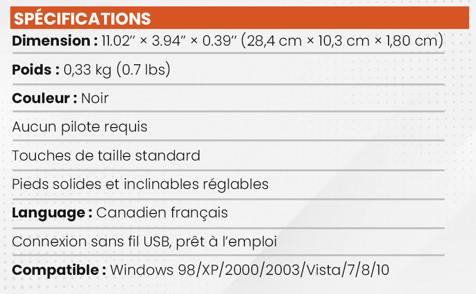 K95CFWL Mini Clavier IntekView Canadien Francais Sans Fil 11 ''
