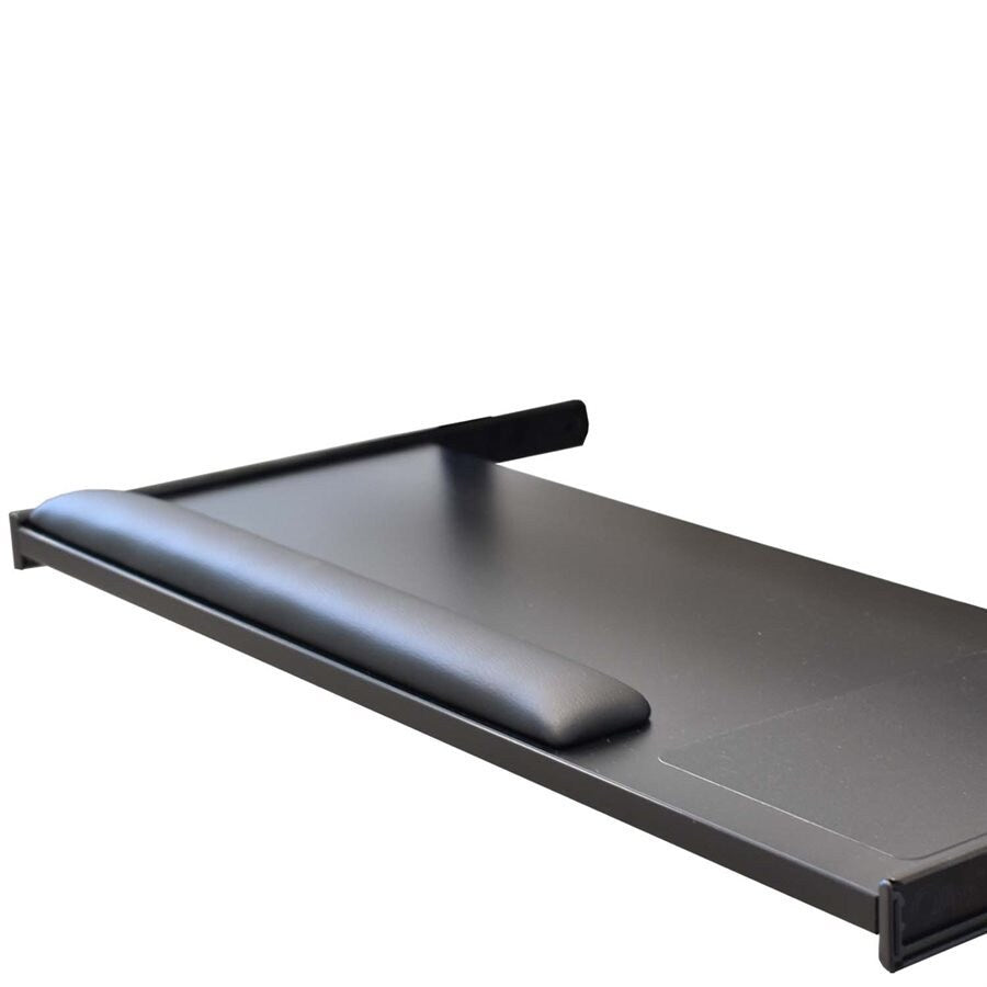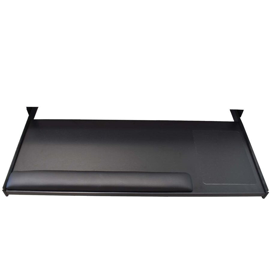 Tiroir à clavier sur rail, repose-poignet 19". En raison de l'utilisation intensive de l'équipement informatique dans l'environnement de bureau moderne, l'ergonomie doit être une considération de premier plan dans la conception des postes de travail. Ce tiroir à clavier économique se range d'une façon pratique sous la surface de travail, ce qui vous permet de gagner un espace de travail précieux. Il peut être fixé sur pratiquement n'importe quel poste de travail et l'installation s'effectue sans difficulté. C’est une solution idéale pour un poste de travail en rotation ou dans un endroit où le travail ne se fait que pour une courte période de temps. Ce tiroir à clavier, de type tirette, est constitué d’un plateau en mélamine noir de 27" et complété avec un repose-poignet en mousse Ergosécure. Pour un usage avec la souris à droite. Pour usage avec souris à gauche, communiquer avec nous.